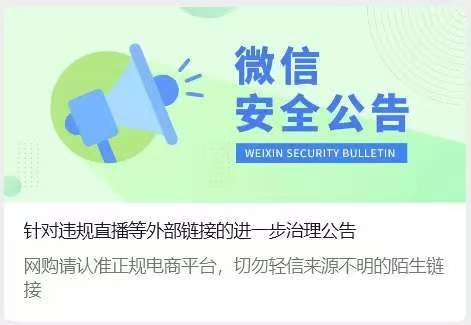 10月27日,微信安全中心发布《针对违规直播等外部链接的进一步治理公告》。